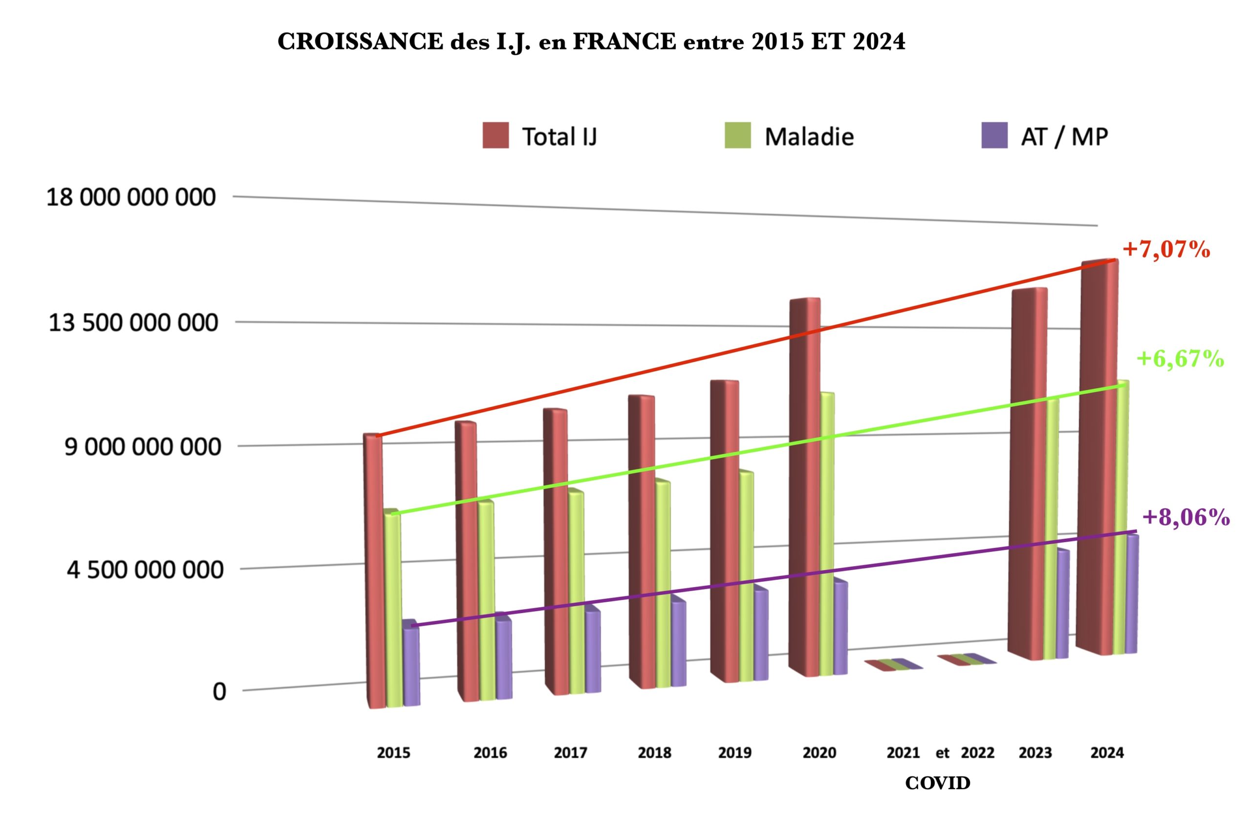 En moyenne elles ont progressé de 7,07% (6,67% pour la maladie et 8,06% pour les accidents de travail et maladies professionnelles AT/MP). Source CNAM: statistiques visibles sous ce lien